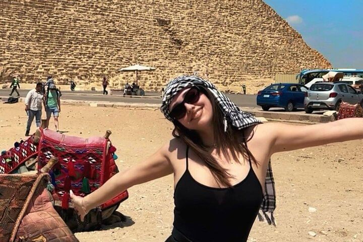 ride a camel through the desert, get social pictures, and enjoy an Egyptian lunch.